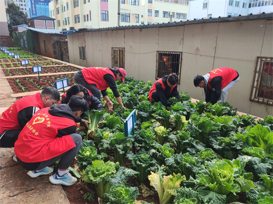 青年志愿者去到“东湖家.爱心菜园”里,把成熟的蔬菜采摘、打包,送往社区爱心食堂。爱心菜地也离不开志愿者们悉心照料,从翻土,播种,再到除草施肥,晴天帮忙浇水,雨天整理菜苗,每一件事都不能落下。志愿者们通过参与到爱心菜园的管理建设中来传递爱心,践行志愿服务精神。
