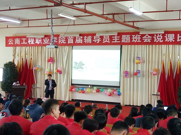 4月25日,云南工程职业学院首届辅导员主题班会说课比赛在阶梯三教室举行,顾贵荣和付晶午两位教师代表人文学院
