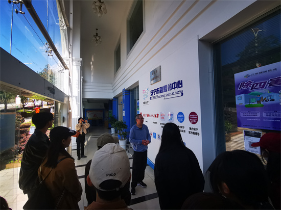 安宁市融媒体中心副主任代恒老师热情接待了师生一行,一边参观一边详细介绍了融媒体中心的职能机构部门和工作运行流程,包括新闻采编、节目制作、播音、新媒体运营等,并耐心解答了同学们的提问。