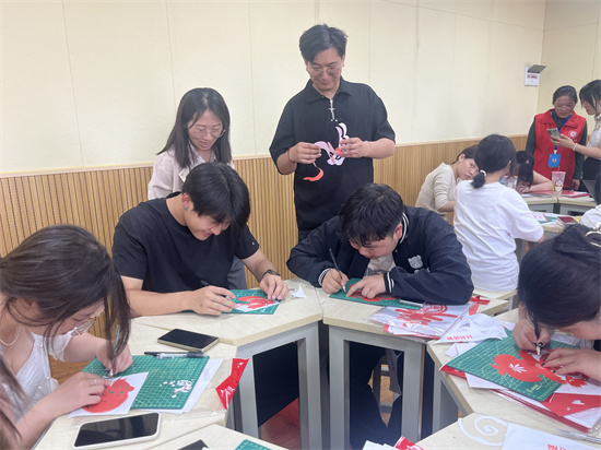 为了确保每位同学都能得到充分的指导,活动分3个实践教学区域分别进行,刻纸志愿者团队巡回指导。同学们逐渐掌握了刻纸的基本技巧,开始动手创作属于自己的作品。在实践过程中,张翠、李安敏、仕如玉三位教师负责辅助巡回指导。最后,志愿者团队帮助学生完成刻纸作品的塑封,确保他们的作品能够得到妥善保存和展示。