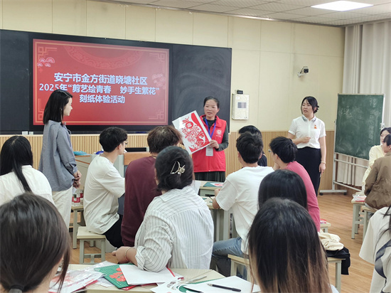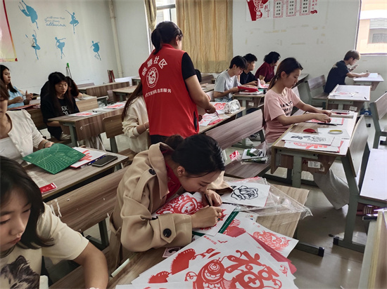 为弘扬中华优秀传统文化,增强学生对非物质文化遗产的了解和认识,云南工程职业学院经济信息学院积极探索校社合作育人新模式。2025年6月13日非物质文化遗产代表性项目安宁刻纸县级代表性传承人袁继芬带领“纸上添花”志愿者团队走进校园,为学前教育专业和建筑室内设计专业的同学们带来一场别开生面的非遗实践活动。