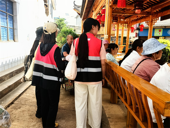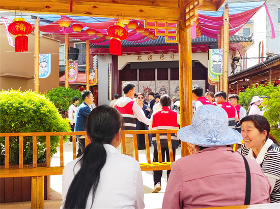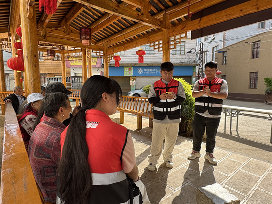 在“长者陪伴”环节,师生志愿者分组走近老年群体,或在舞台区域与老人促膝长谈,倾听他们的生活故事与需求;或带领大家学习简单的广场舞,在欢快的节奏中让长者感受到温暖与尊重。学生们用真诚的微笑和贴心的服务赢得了长辈们的一致好评。“这些年轻人很有礼貌,也很懂我们老年人的喜好,感觉像是多了好几个孙子孙女。”一位村民阿婆高兴地说道。
