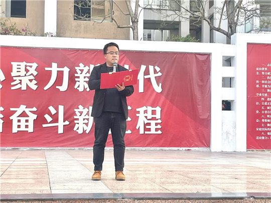 为全面深入学习贯彻党的二十大精神,落实党中央、国务院关于职业教育重要部署,深化“三教”改革、“岗课赛证”综合育人,在丰富学生校园文化生活的同时,树立正确的职业观,培养更多高素质技能型人才,提高学生的职业技能,提高就业竞争力,促进学校教育教学高质量发展。2023年4月7日上午,云南工程职业学院教育学院第五届“铭鼎杯”大学生职业技能大赛开幕式暨赛前首次指导学习培训在铭鼎广场举行,教育学院党支部书记、副院长李扬出席开幕式并致辞。
