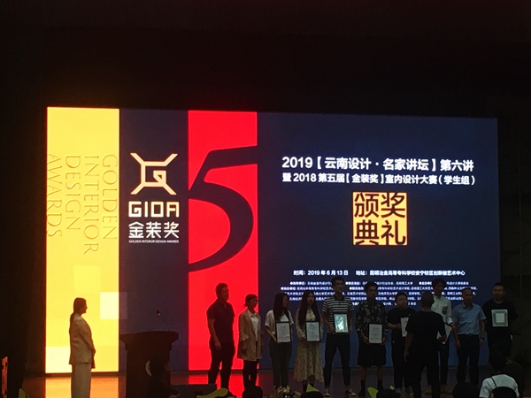 为了进一步培养学生的创新能力和自主学习能力、激发学生设计思维,全面提高学生的综合素质,营造学设计、爱设计的浓厚文化氛围。 2019年6月13日,我校经济信息学院院长李艳花,建筑室内设计教研室教师仕如玉、戚惠、康亚慧,带领16级建筑室内设计高职02班的同学们参加了第五届【金装奖】室内设计大赛(学生组)的颁奖典礼以及“云南设计·名家讲坛”活动。