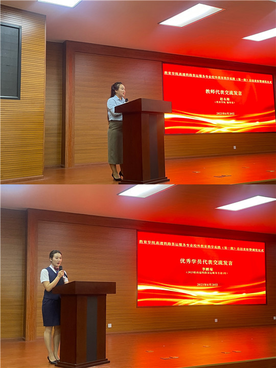为深入学习贯彻党的二十大精神和全国、全省职业教育大会精神,落实云南省委办公厅、省政府办公厅《关于推动现代职业教育高质量发展的意见》,进一步强化学生对所学专业在行业与职业中的了解,更好与企业接轨,增强职业体验感,提高就业竞争力。教育学院为期两个月高速铁路客运服务专业校外教育教学实践(第一批)已圆满结束,并于2023年6月20日在三教报告厅举行云南工程职业学院教育学院高速铁路客运服务专业校外教育教学实践(第一批)总结表彰暨颁奖仪式。学校校长子重仁、教务处处长赵云鹏、学生工作部部长黄凯敏、教育学院院长张发品、教育学院副院长李扬以及教育学院管理干部、高速铁路客运服务专业专任教师、辅导员参加了总结表彰暨颁奖仪式。