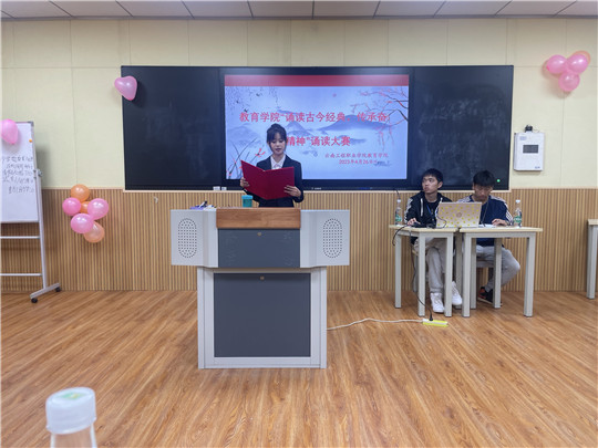为深入学习贯彻党的二十大精神,传承弘扬中华优秀语言文化,推进文化自信自强,诠释中华优秀文化内涵。教育学院于2023年4月26日19:30在一教614举办了以“诵读古今经典,传承奋斗精神”为主题的朗诵决赛。教育学院教务科科长张红菊,分院就业指导员代表出席担任本次比赛评委。