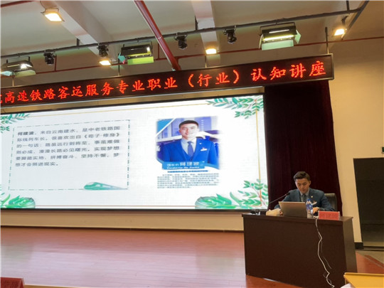 中国铁路昆明局集团公司昆明客运段列车长何建波以自身职业发展经历为主线,从锤炼初心到梦想弛聘,与同学们进行了分享交流,并告诫同学们:“骐骥一跃,不能十步;驽马十驾,功在不舍。唯有日复一日的奋斗,不忘初心坚守梦想奔跑向前,当取得一定进步以后,我们也要不断沉淀,追求更优秀的自己”。